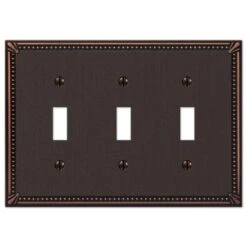 Amerelle Imperial Bead Aged Bronze 3 Gang Die-Cast Metal Toggle Wall Plate 1 Pk