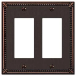 Amerelle Imperial Bead Aged Bronze 2 Gang Die-Cast Metal Decorator Wall Plate 1 Pk