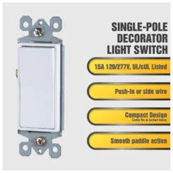 Faith 15 Amps Single Pole Decorator Paddle Switch White 10 Pk