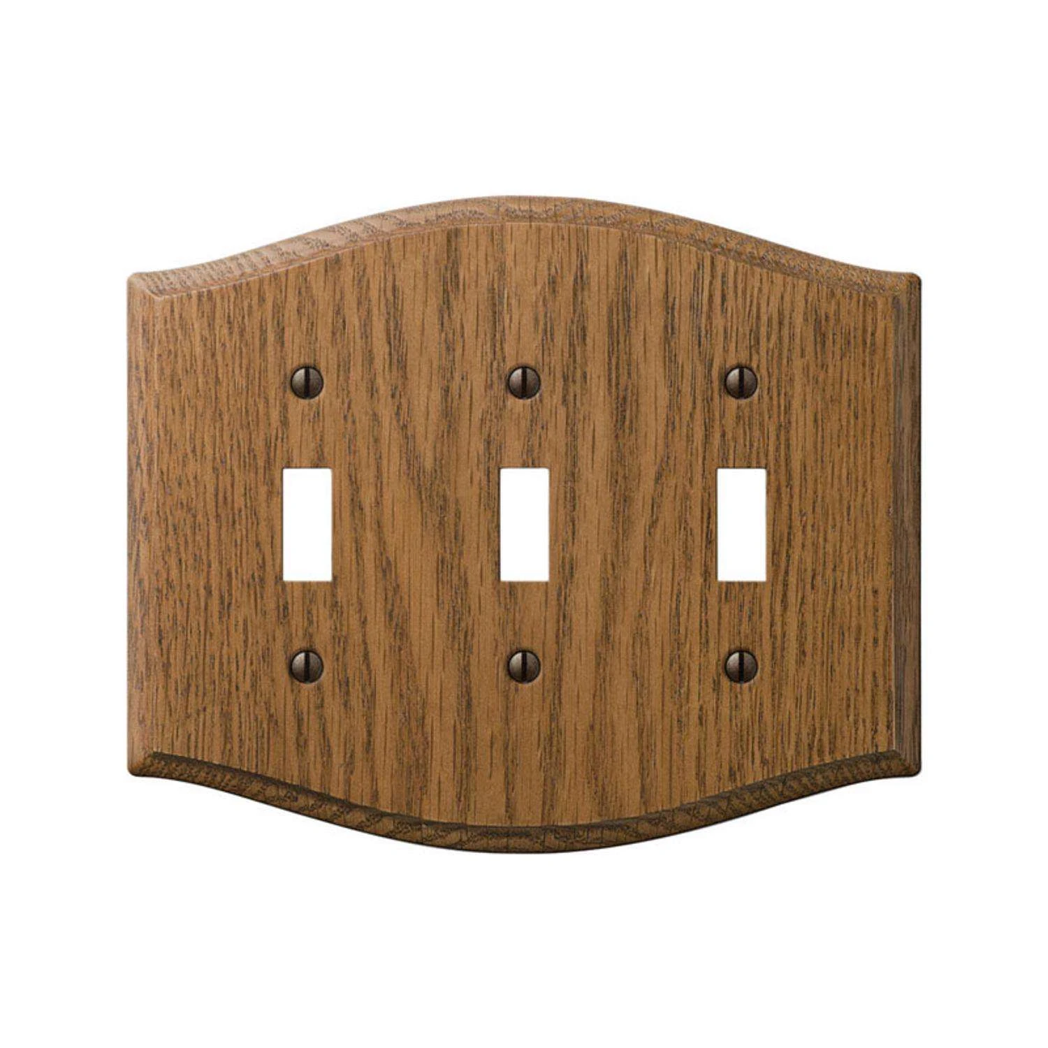 Leave a lasting impression for your home decor when you choose Amerelle wallplates. With a vast range of styles to choose from, our wallplates will be the defining feature to your home improvement projects. Add our wallplates as a decorative accent to any room, by matching design elements such as cabinet hardware, plumbing and lighting fixtures, flooring, wallpaper and more.ELEVATING STYLE: An Amerelle Wall Plate will give richness and elegance to your space and be the finishing touch to your home decor and home improvement projects. Our wide selection of wallplates are fit to match any decor style and paint finish.LASTING VALUE: Know you are receiving a durable, long-lasting product when you buy an Amerelle wallplate. Made from the finest materials to maintain its finish for years. An Amerelle Wall Plate is an inexpensive upgrade to any home.SUPERIOR QUALITY: Amerelle wallplates are made with you and your home in mind. It is the finishing touches that make your home special. We provide top-notch products that are sure to last, so you and your family can focus on enjoying your home.PRODUCT DETAILS: Configruation: 3-Gang Toggle Material: Wood Color: Oak Dimensions: 5.88 inch (H) x 6.63 inch (W) cULus Listed Color Mach Mounting Screws Included