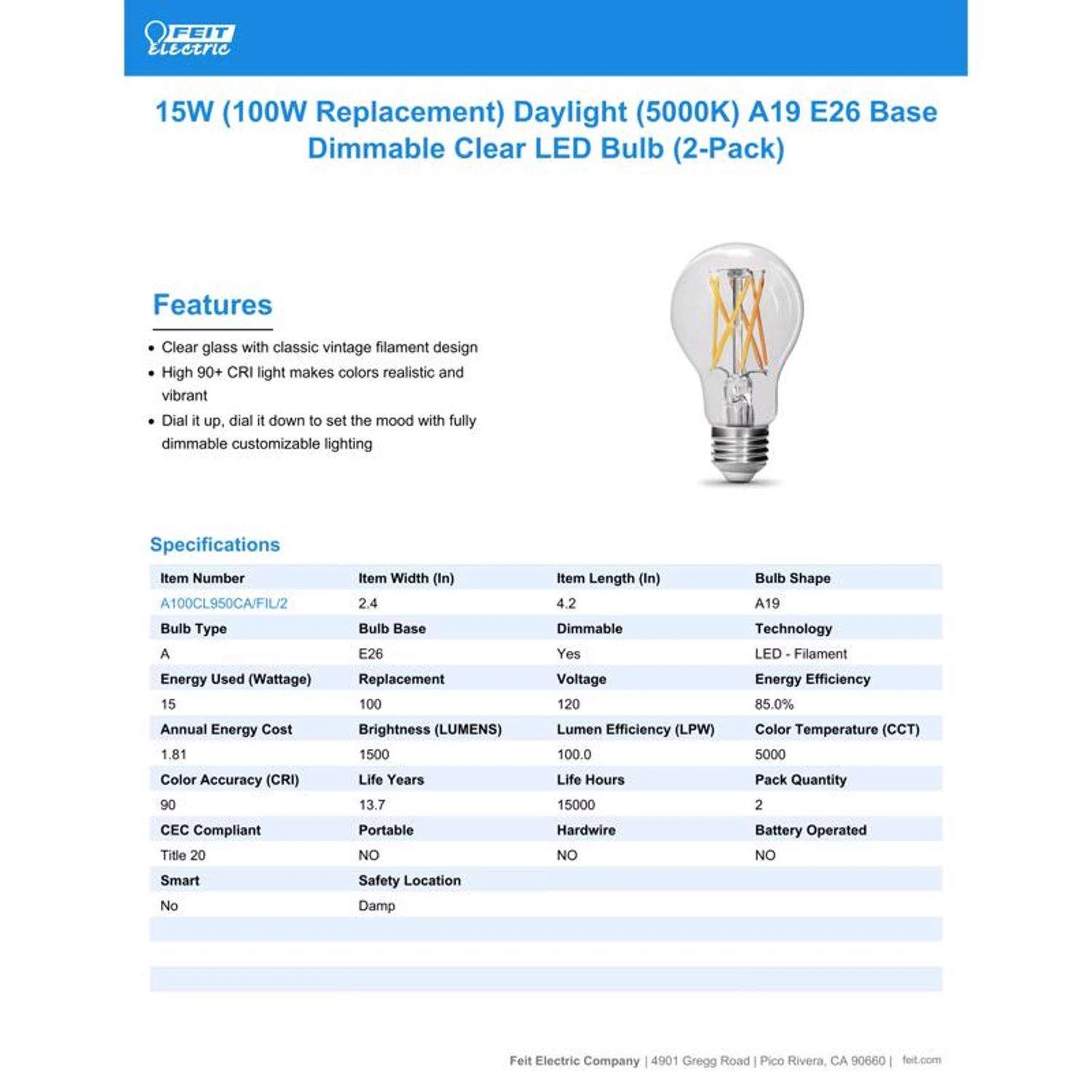 | Search Field | Feit Enhance A19 E26 (Medium) Filament LED Bulb Daylight 100 Watt Equivalence 2 pk Light Bulbs LED Bulbs LED LIGHT BULBS A-LINE BULB – LED FEIT ELECTRIC CO Feit Enhance 100__rexuom__watts 100__rexuom__watt 2__rexuom__pk 2__rexuom__pack |