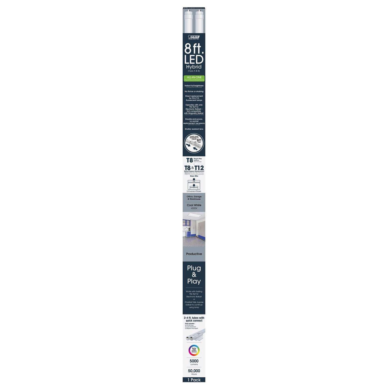 Feit LED Linears T8/T12 Cool White 93.4 In. 1-Pin Linear LED Tube Light Bulb 42 Watt Equivalence 1 P