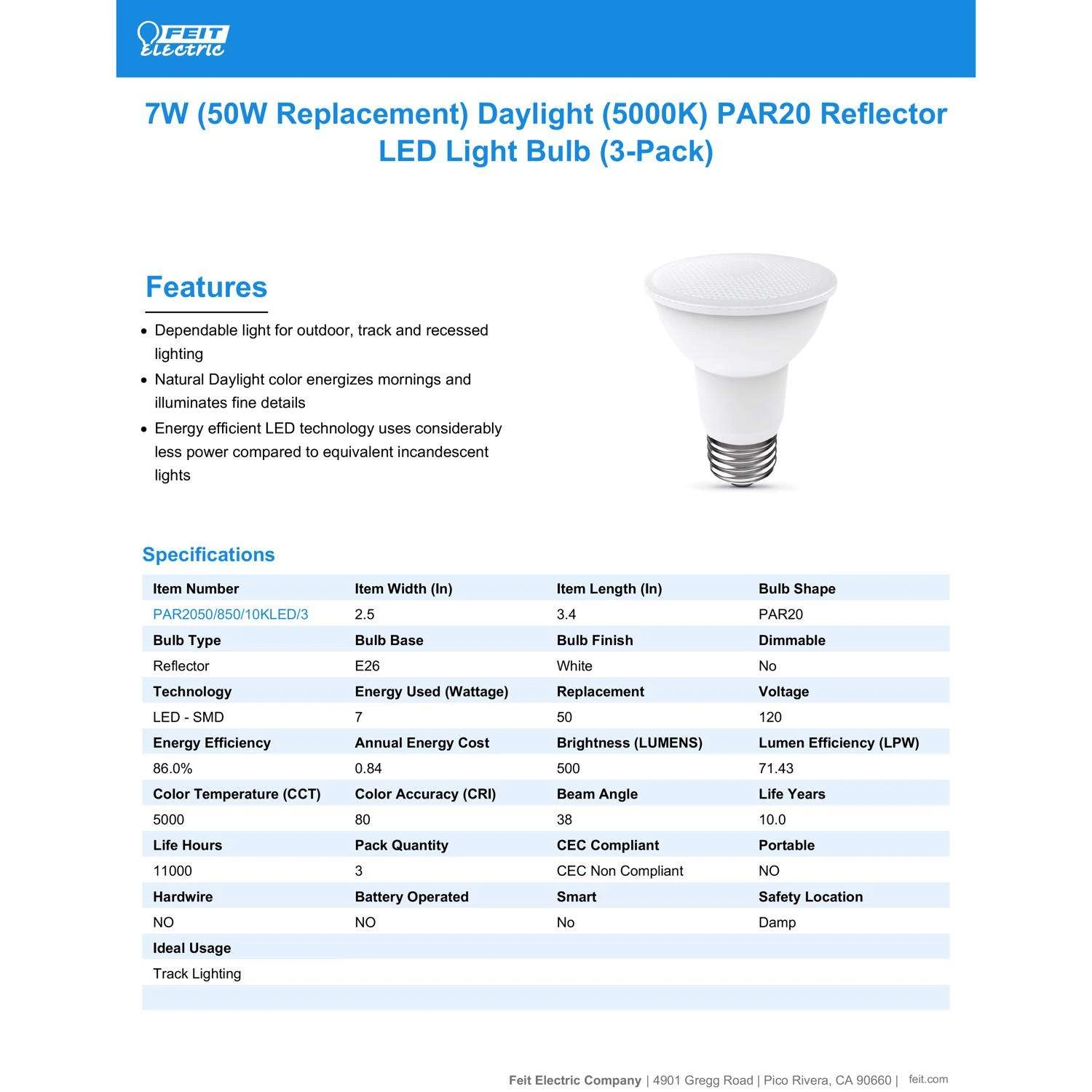 | Search Field | Feit LED Non Dimmable PAR20 E26 (Medium) LED Bulb Daylight 50 Watt Equivalence 3 pk Light Bulbs LED Bulbs LED LIGHT BULBS REFLECTOR – LED FEIT ELECTRIC CO Feit LED Non Dimmable 50__rexuom__watts 50__rexuom__watt 3__rexuom__pk 3__rexuom__pack |