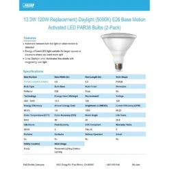 Be the first to review “Feit LED Smart PAR38 E26 (Medium) LED Motion Activated Bulb Daylight 120 Watt Equivalence 2 Pk” Cancel reply