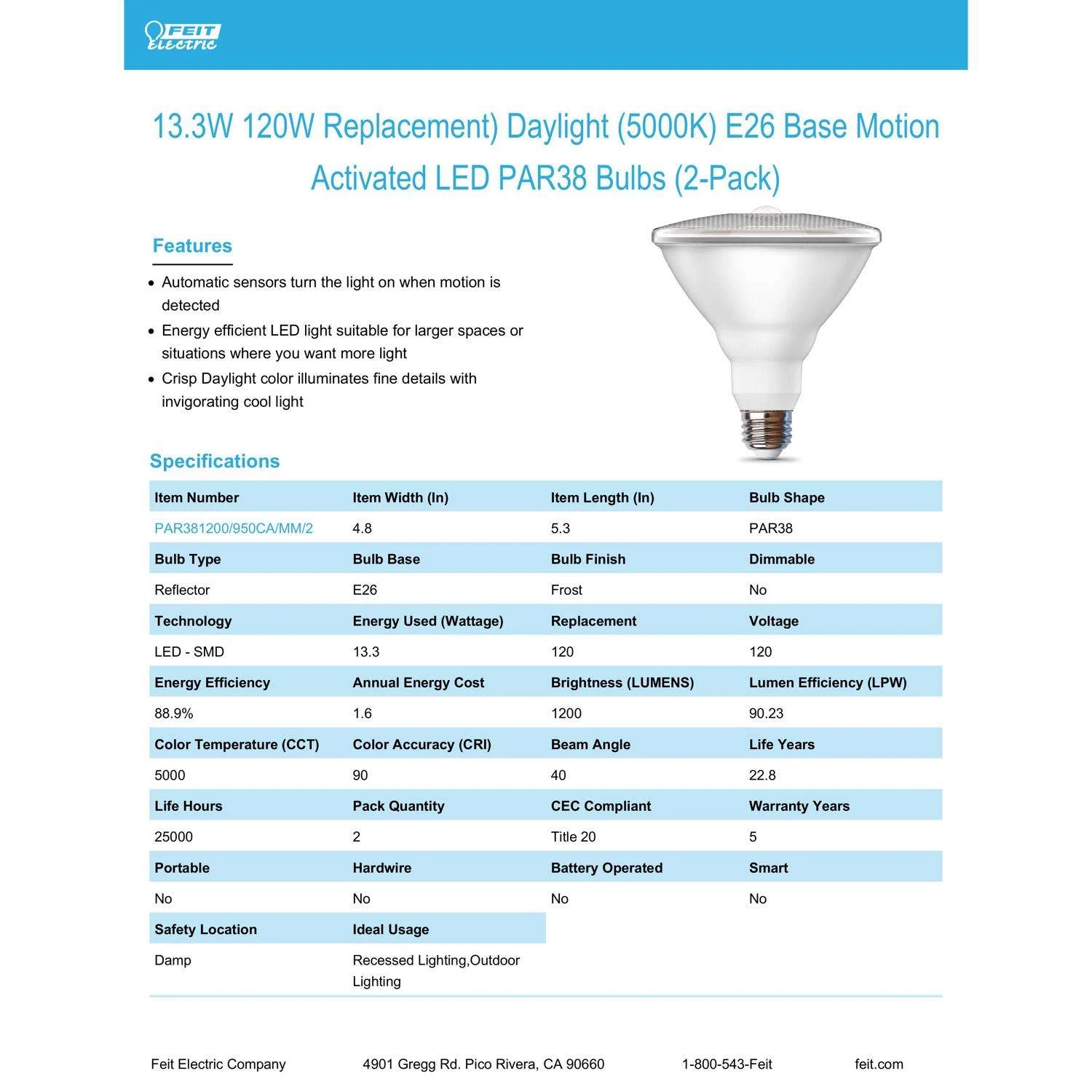 Feit LED Smart PAR38 E26 (Medium) LED Motion Activated Bulb Daylight 120 Watt Equivalence 2 Pk