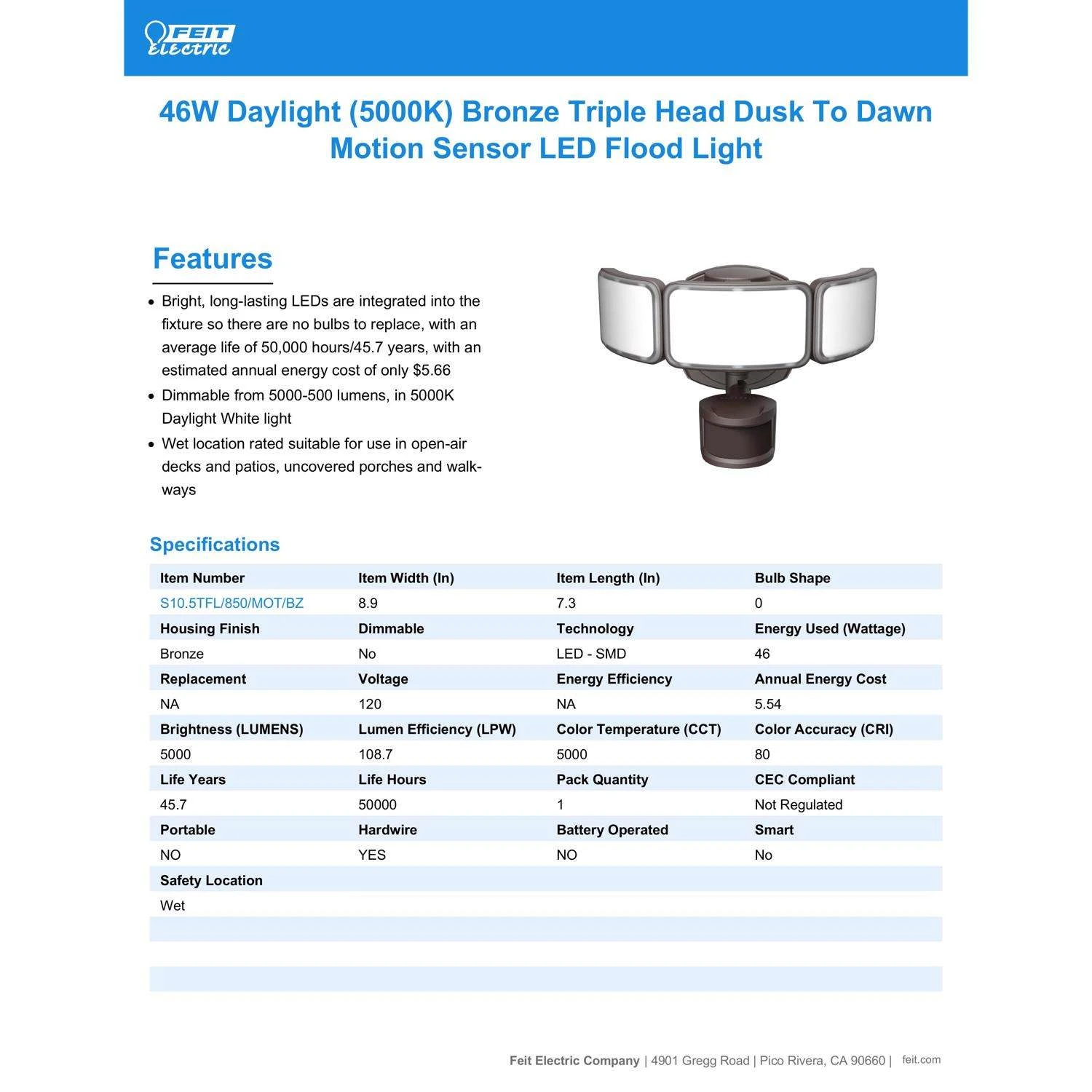 | Search Field | Feit Motion-Sensing Hardwired LED Bronze Security Floodlight Outdoor Lighting Security Lighting OUTDOOR AREA LIGHTING LED MOTION ACTIVATED FEIT ELECTRIC CO Feit |