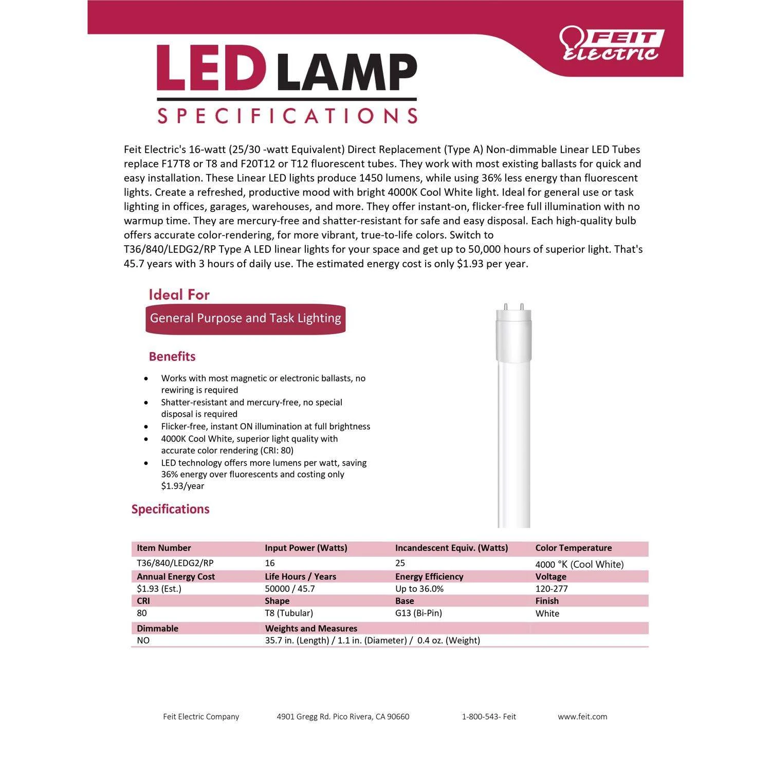 Be the first to review “Feit Plug & Play T8 And T12 Cool White 35.7 In. G13 Linear LED Bulb 12 Watt Equivalence 1 Pk” Cancel reply