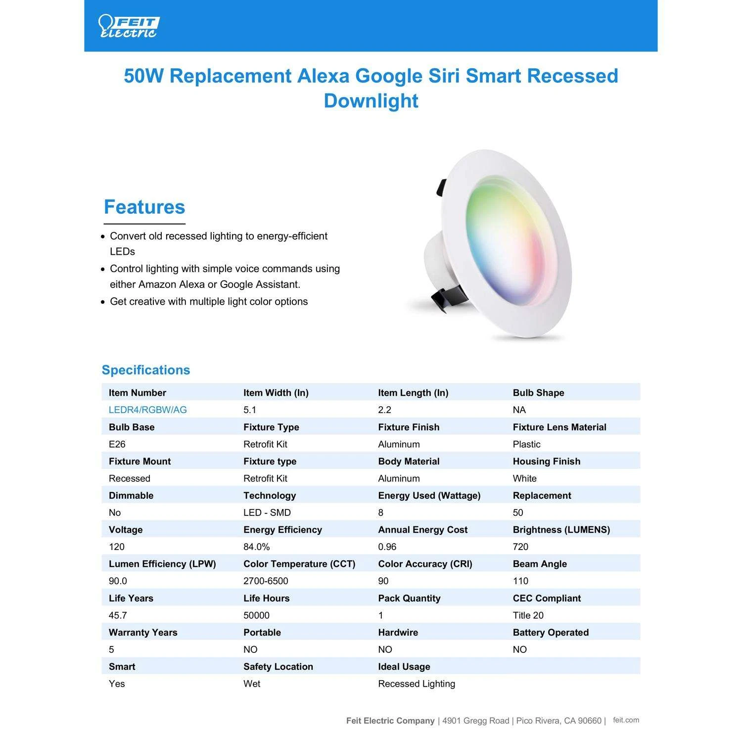 Feit Smart Home Frost White 5.1 In. W Aluminum LED Smart-Enabled Dimmable Recessed Downlight 8 W