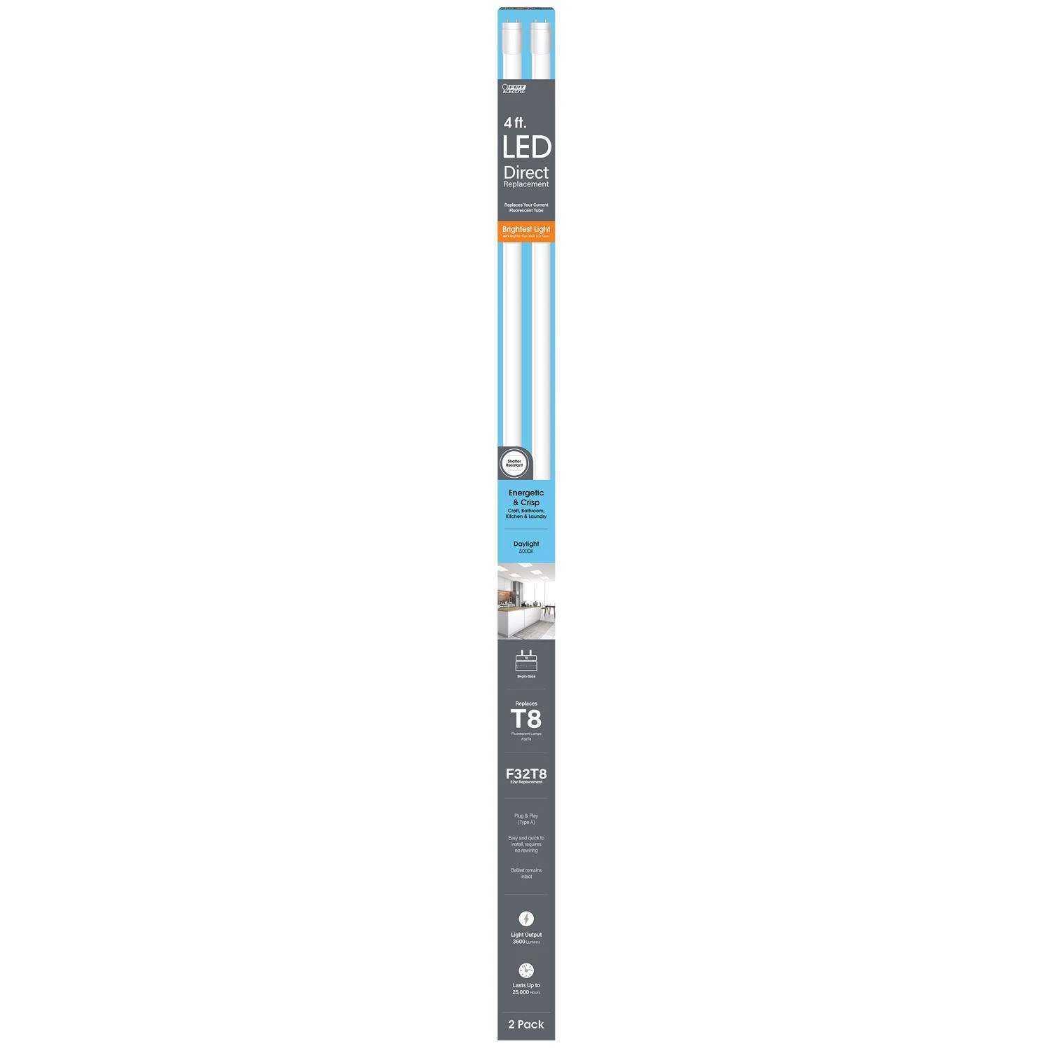 Feit T8 DayLight 48 In. Bi-pin Base Linear Lamp LED 32 Watt Equivalence 2 Pk