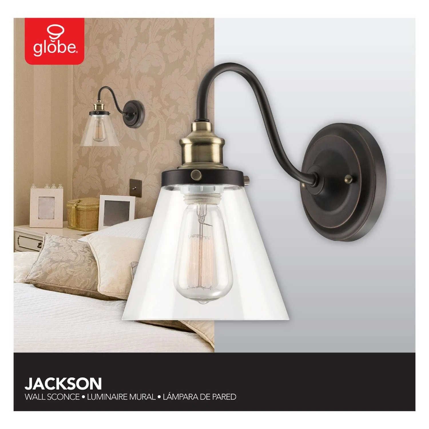 | Search Field | Globe Electric Jackson 1-Light Brown Wall Sconce Light Fixtures Wall Sconces DECORATIVE LIGHT FIXTURES INTERIOR DECORATIVE GLOBE ELECTRIC COMPANY USA INC Globe Electric Jackson |