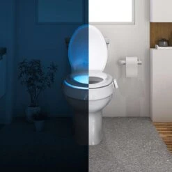 The Illumibowl Motion-Activated Bathroom Toilet Night Light turns on by itself when someone enters the bathroom in the dark. It features several different fun colors that light up and allow you to find your way without blinding you. The Illumibowl night light uses several suction cups to quickly attach to your toilet and can be installed in seconds. Removal for cleaning is also quick and simple. Its thin and sleek design takes up very little space on the side of your toilet and the light it emits is soft and easy on the eyes. The Illumibowl Motion-Activated Bathroom Toilet Night Light is ideal for potty training and for anyone who uses the bathroom during the night. It also gives the room a cool and bright look at night.Toilet bowl night lightRotating colorsGreat for potty trainingColor selectionEasy installationSleek and slim designSoft lightUses 3 AAA batteries (not included)