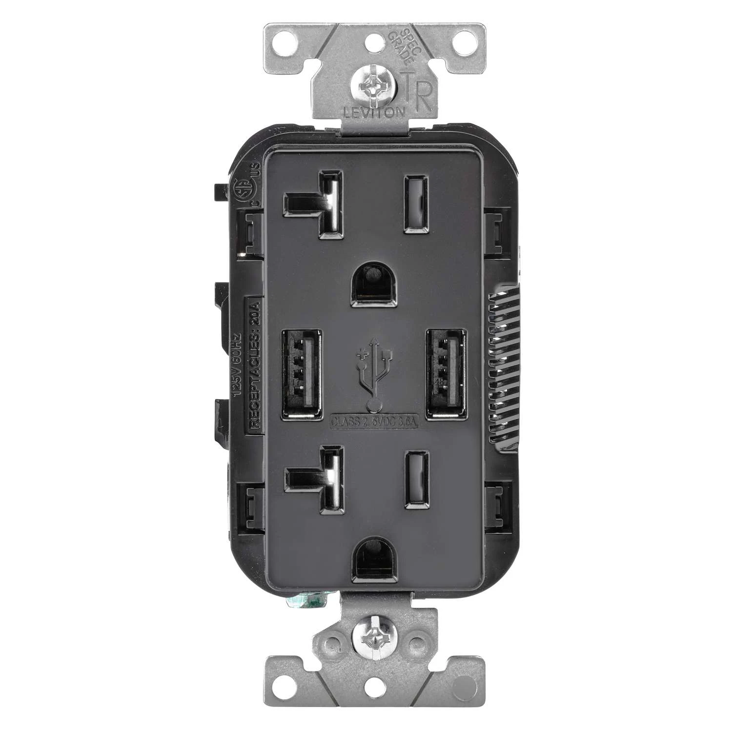 Leviton Decora 20 Amps 125 V Black Outlet And USB Charger 5-20R 1 Pk