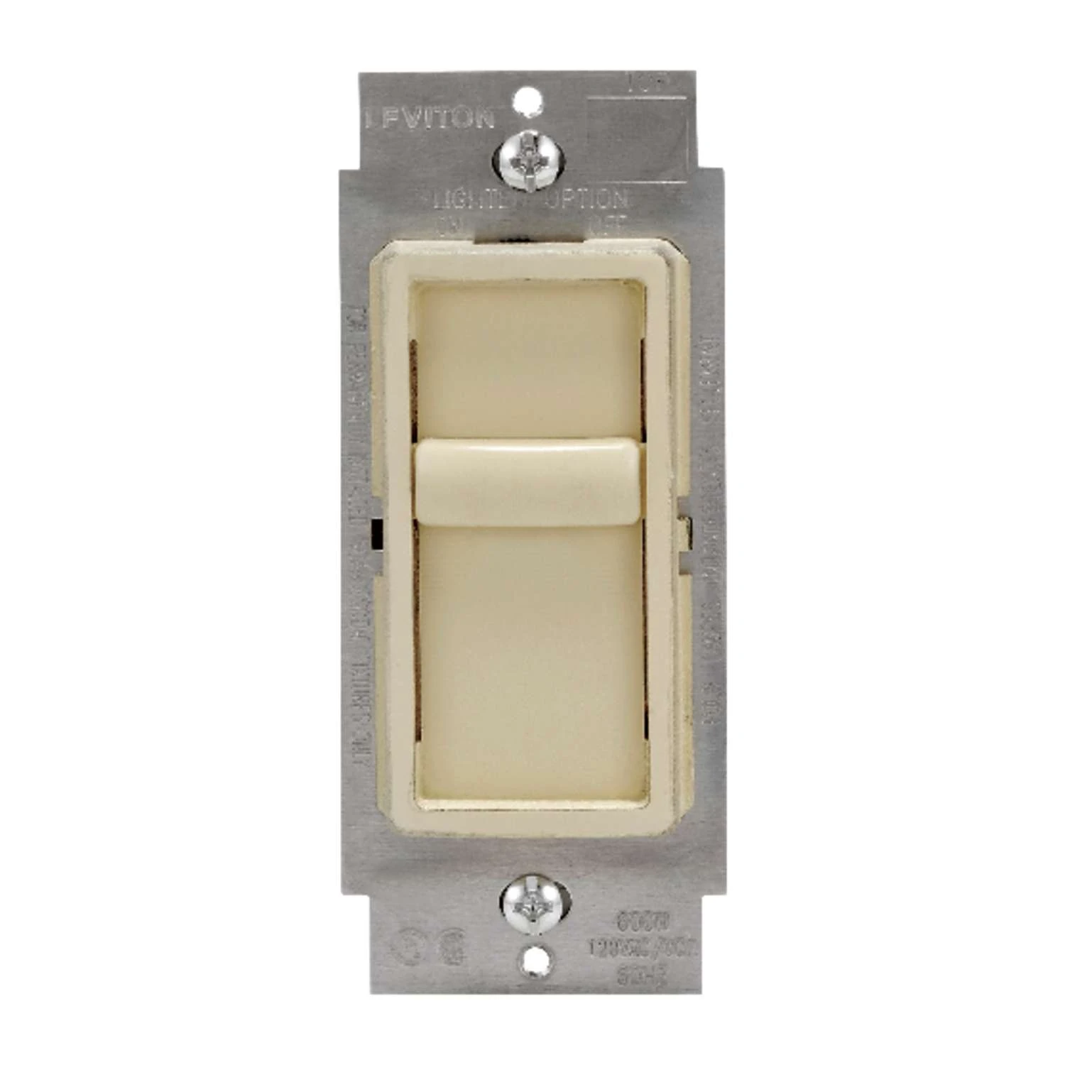 Leviton Decora SureSlide dimmers provide smooth, slide-action, full-range dimming for incandescent and dimmable LED and CFL lamps. Featuring slide-to-off functionality, this device is designed for users who choose to adjust lighting levels each time the device is used. The dimmer is designed specifically for dimmable light emitting diodes (LED) and dimmable compact fluorescent (CFL) lamps it is also compatible for use with incandescent lamps.Integrated linear full range slide control for easy, precise operationFuture proof to control a variety of dimmable LED and CFL lampsSlim, compact housing fits easily into a standard wall box and is suitable for multi-gang installationsBackwards compatible with incandescent lampsBuilt-in radio/TV interference filterFor use in a single-pole installation, no neutral wire required for installationIntegrated slide control for easy, precise dimmingCan be used to comply with 2019 California Title 24Built-in radio/TV interference filter