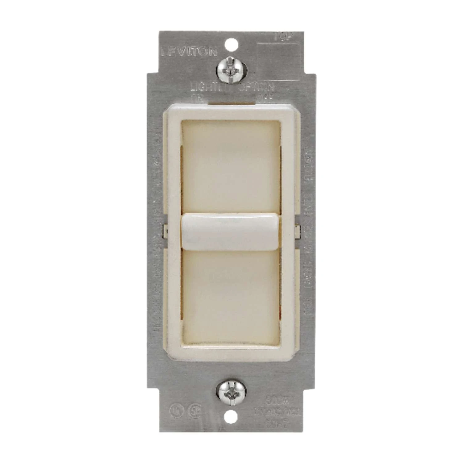Leviton Decora SureSlide dimmers provide smooth, slide-action, full-range dimming for incandescent and dimmable LED and CFL lamps. Featuring slide-to-off functionality, this device is designed for users who choose to adjust lighting levels each time the device is used. The dimmer is designed specifically for dimmable light emitting diodes (LED) and dimmable compact fluorescent (CFL) lamps it is also compatible for use with incandescent lamps.Integrated linear full range slide control for easy, precise operationSlim, compact housing fits easily into a standard wall box and is suitable for multi-gang installationsBackwards compatible with incandescent lampsBuilt-in radio/TV interference filterSet the mood by adjusting the light level for any activityFor use in a single-pole installation, no neutral wire required for installationIntegrated slide control for easy, precise dimmingCan be used to comply with 2019 California Title 24Built-in radio/TV interference filter