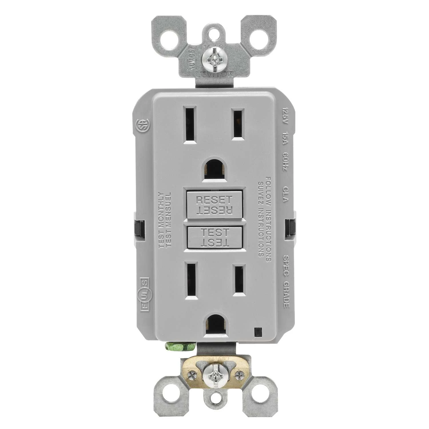 Leviton SmartlockPro 15 Amps 125 V Gray GFCI Outlet 5-15R 1 Pk