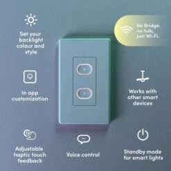 LIFX Switch behaves like a normal light switch for normal lights. Except now you can schedule those lights to turn on and off at any time. Or even control them from your app. Or connect them to voice assistants. This also means you can make your extractor fans and towel racks smart. And if you have LIFX smart lights, you can now employ “soft switching” so everyone in the family can turn lights off without disrupting automated actions and preventing control.Wi-Fi-connected with 2.4GHz connection, wired-in wall switch that works with major voice partnersTurn normal lights smart, in a whole room or even whole homeSoft-switching LIFX lights always in standby mode, even when switched offIncrease the value of your home with future-proofed, modern design – backlit, with haptic touch2 buttons to use for relay switches, “smart buttons”, or a combination of bothBuilt in Wifi