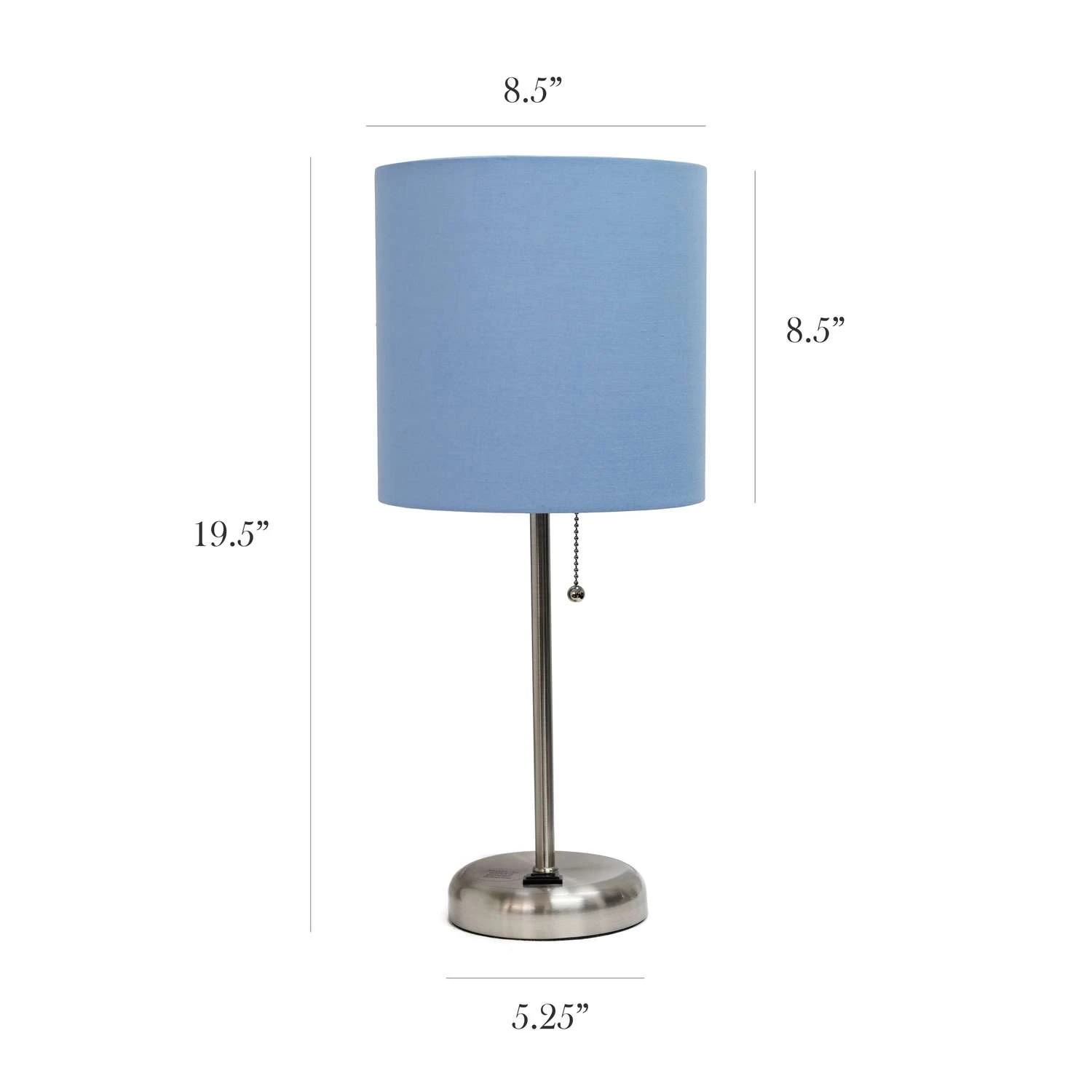 Be the first to review “LimeLights 19.5 In. Brushed Steel Blue Table Lamp With Charging Outlet” Cancel reply