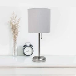 Be the first to review “LimeLights 19.5 In. Brushed Steel Gray Table Lamp With Charging Outlet” Cancel reply