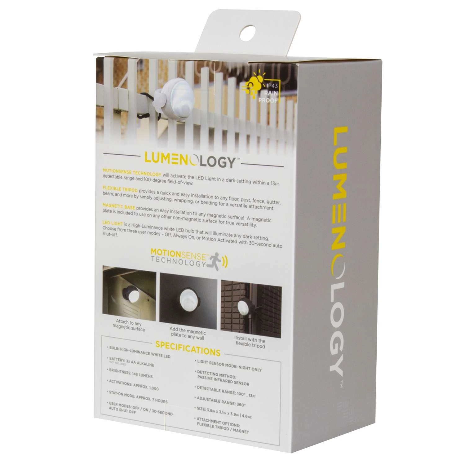 | Search Field | Lumenology Motion-Sensing Battery Powered LED White Security Light Outdoor Lighting Security Lighting OUTDOOR AREA LIGHTING LED MOTION ACTIVATED LIMITLESS INNOVATIONS INC Lumenology |