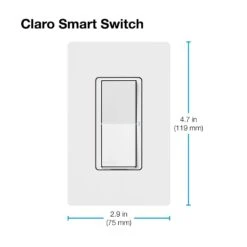 Introducing the Claro smart switch for Caseta smart lighting. Lutron’s most popular switch design is now smart and works in your Caseta home. Match existing Claro switches in your home with the same elegant, recognized rocker style, updated to match existing Caseta products with an LED indicator light. Welcome, Home to Peace of Mind – always come back to a well-lit home with the Claro smart switch. Enable the Smart Away feature to randomly turn lights on and off, to make it look like you’re home, even if you’re away (smart hub required). Use the smart hub to connect your Caseta Claro smart switch to more leading smart home devices – including Alexa, Apple Home, the Google Assistant, Ring, and Sonos – than any other smart lighting control brand. Not only does the smart hub unlock smart control and device integration – but it also doesn’t use Wi-Fi to control your lights. Stay connected even when your Wi-Fi goes down and stop slowing your internet speed with more devices. Create a new 3-way or replace an existing one with the Claro smart switch. Pair a Pico remote and bracket to your switch and mount the Pico/bracket on almost any surface – no cutting holes or pulling wire requires (Pico and bracket sold separately). Coordinating wallplate and other accessories sold separately.PEACE OF MIND: Always come back to a well-lit home with Caseta – enable the smart away feature to randomly turn your lights on and off to look like you are home even if you’re awayRecognized aesthetic, Lutron’s most popular switch design is now smart. Features the well-loved design of Claro switches, and matches existing paddle style dimmers and switches for a classic look throughout any home.Most Connected, Caseta connects with more leading smart home devices, including Alexa, Apple Home, Google Home, Ring and SONOS than any other smart lighting control brandTechnical Details: Works with 5A LED or 3A fan, neutral wire requiredWhy a smart hub? The smart hub provides an ultra reliable and responsive local network for your lighting system, simple set up with a single button press and works even when your wifi goes down.Caseta puts the smart in the switch so you can control your lights a variety of waysPerfect for exterior lights, ideal for areas where dimming is not needed such as garage or outdoor porch lightsAdd a 2nd switch almost anywhere, create a 3 way with your claro smart switch by mounting Pico remote wall mount bracket to almost any surface, without cutting holes or pulling wireIndicator light on the right side of the switch adds a soft glow when lights are activated.