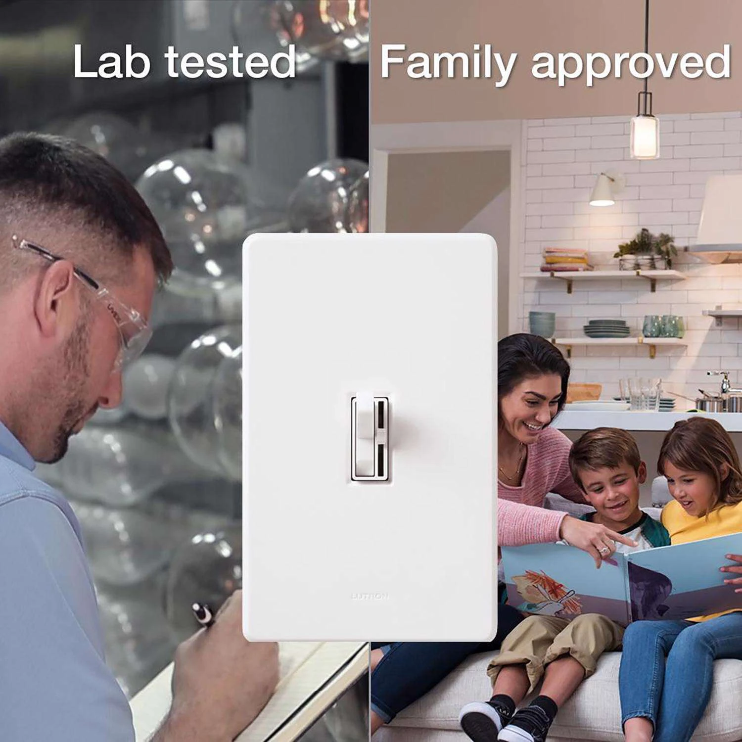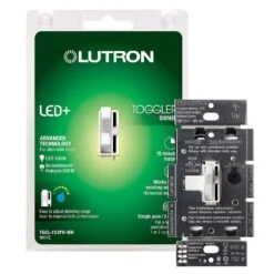 The Toggler LED+ dimmer switch provides optimal dimming performance of LED bulbs. This dimmer switch works with up to 150-Watt of dimmable LED/CFL or 600-Watt of incandescent/halogen, allowing you to control multiple bulb types on the same circuit. It is designed to control a broad range of dimmable LED and CFL bulbs from a variety of brands including Philips, Cree, GE, EcoSmart and Lighting Science. The Toggler dimmer switch features a toggle switch to turn your lights off or on returning the lights to your favorite level. Adjust your light to any activity using the discreet slide control next to the switch. Coordinating wall plate sold separately.Tested on 1,000s of bulbs and dozens of brands for flicker-free dimming. For list of recommended bulbs view “Compatibility Chart”Provides over 250 lighting levels so you can create the perfect light for any activityWorks with up to 150 Watts of dimmable LED/CFL bulbs or 600 Watts of Incandescent/Halogen bulbsLutron patented technology to optimize the dim range of your bulb and prevent interference with other dimmers in the homeCan be used in single-pole or 3-Way applications, where lights are controlled from one or two locationsToggle switch turns lights on/off to favorite light level. Small slider dims and brightens the lightsInstalls in as little as 15 minutes in homes of all ages – NO NEUTRAL REQUIREDIncludes (1) Toggler LED+ (formerly C.L) dimmer switch, coordinating wall plate sold separately