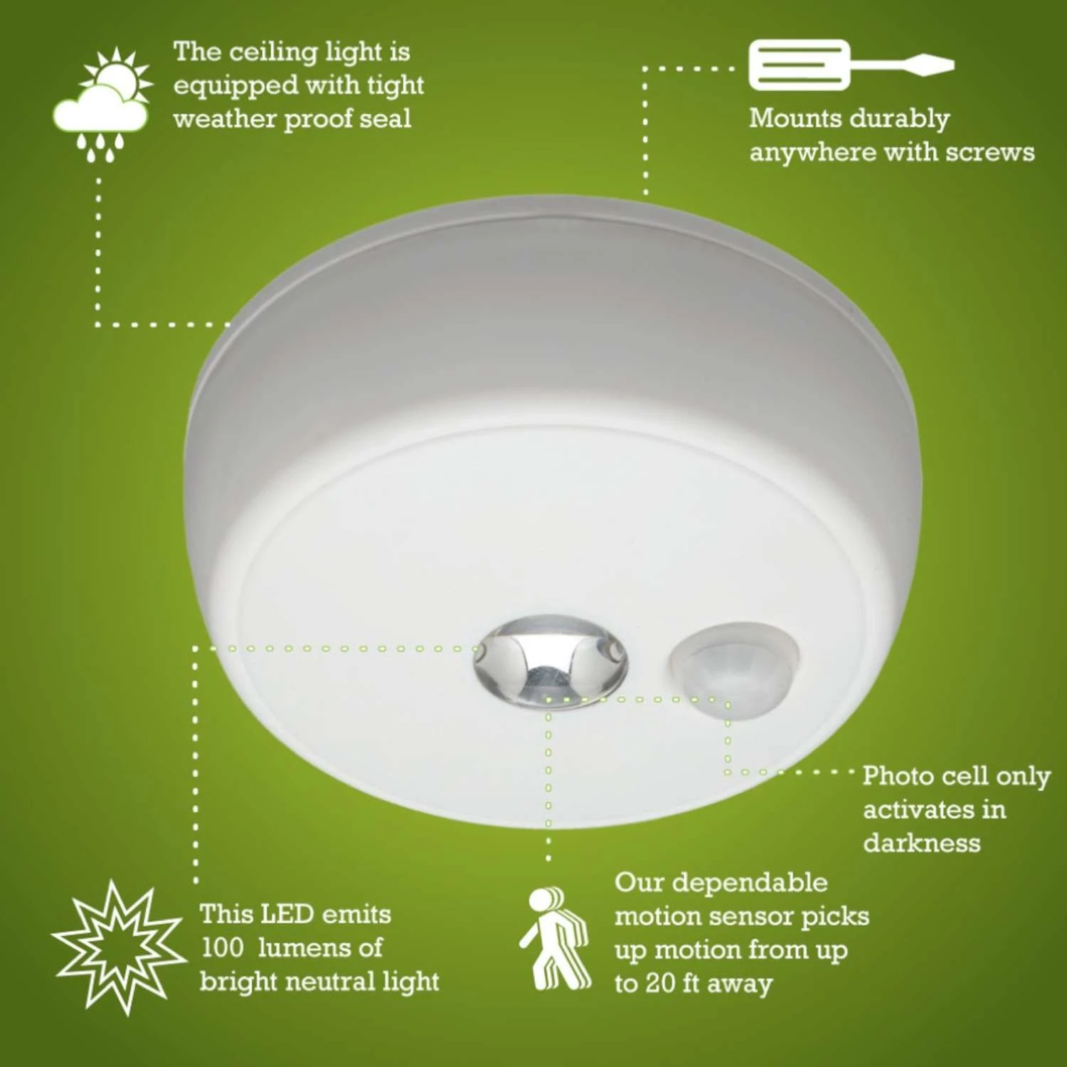 Mr. Beams Motion-Sensing Battery Powered LED White Ceiling Light
