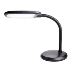 The Eos table lamp is designed to be the perfect lamp for activities that require bright, crisp light. Equipped with over 50 high-powered leds, the Eos LED lamp delivers invigorating glare-free light that mimics daylight. A flexible lamp neck and touch dimming sensor gives you the freedom to adjust your light.Natural Spectrum: The Eos desk lamp provides crisp and invigorating light that mimics daylight, perfect for highly detailed activities.Easy On The Eyes: Emitting crisp white light that is flicker-free and glare-free, the Eos black lamp is designed to give you optimal illumination for any activity.Adjustable Light: A touch dimmer sensor gives you brightness control and a flexible lamp neck provides light where you need it.Energy Savings: Expect to save 90% in energy costs over regular incandescent lamps with our LED light rated to last 50,000 hours.Satisfaction Guaranteed: Be confident with your purchase knowing this product is backed by a best in class 5 year warranty.