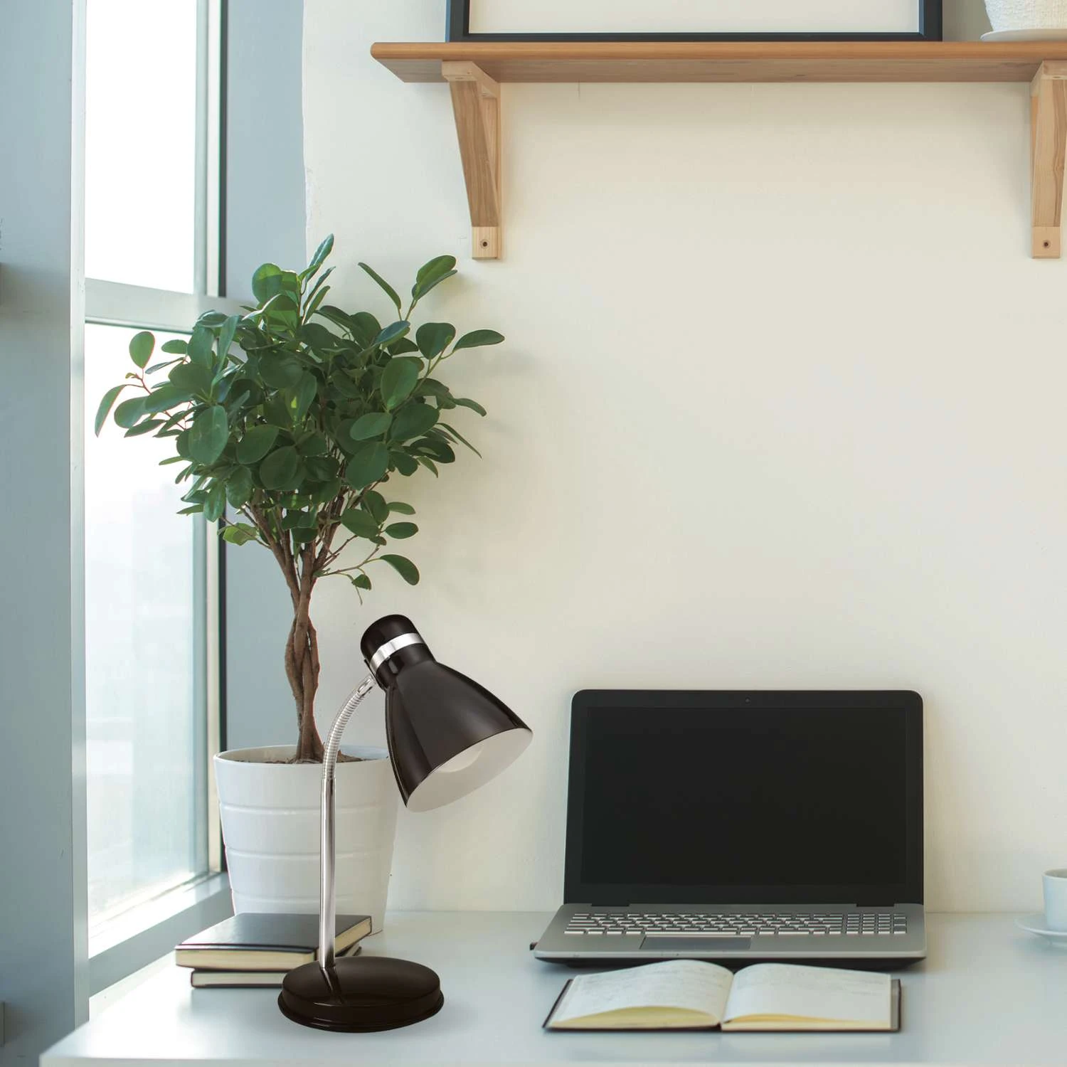 The Oxford is designed as a classic desk lamp that fits anywhere. A flexible lamp head provides light where you need it and an included LED bulb provides optimal energy efficient light. Perfect for any desk or table, the Oxford is straightforward and classic.With a flexible lamp neck and a classic design, the Oxford is the perfect desk lamp for your office or study.Classic lamp design meets small form factor for a desk lamp that fits anywhere and everywhere.Expect to save 90 percent in energy costs over regular incandescent lamps with our included LED light bulb rated to last 30,000 hours.Be confident with your purchase knowing this product is backed by a best in class 5 year warranty.Please note that an LED light bulb is included with this product. The Oxford accepts standard E26 bulbs with a max wattage of 6W for LED bulbs and 40W for incandescent bulbs.
