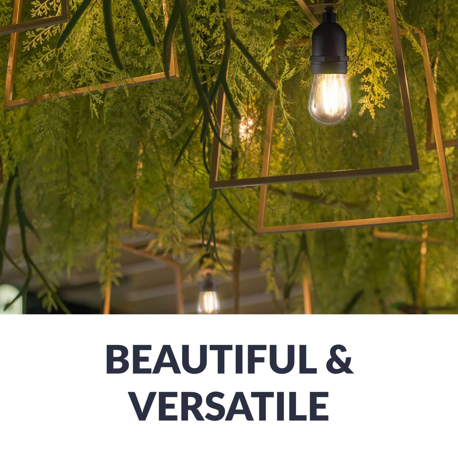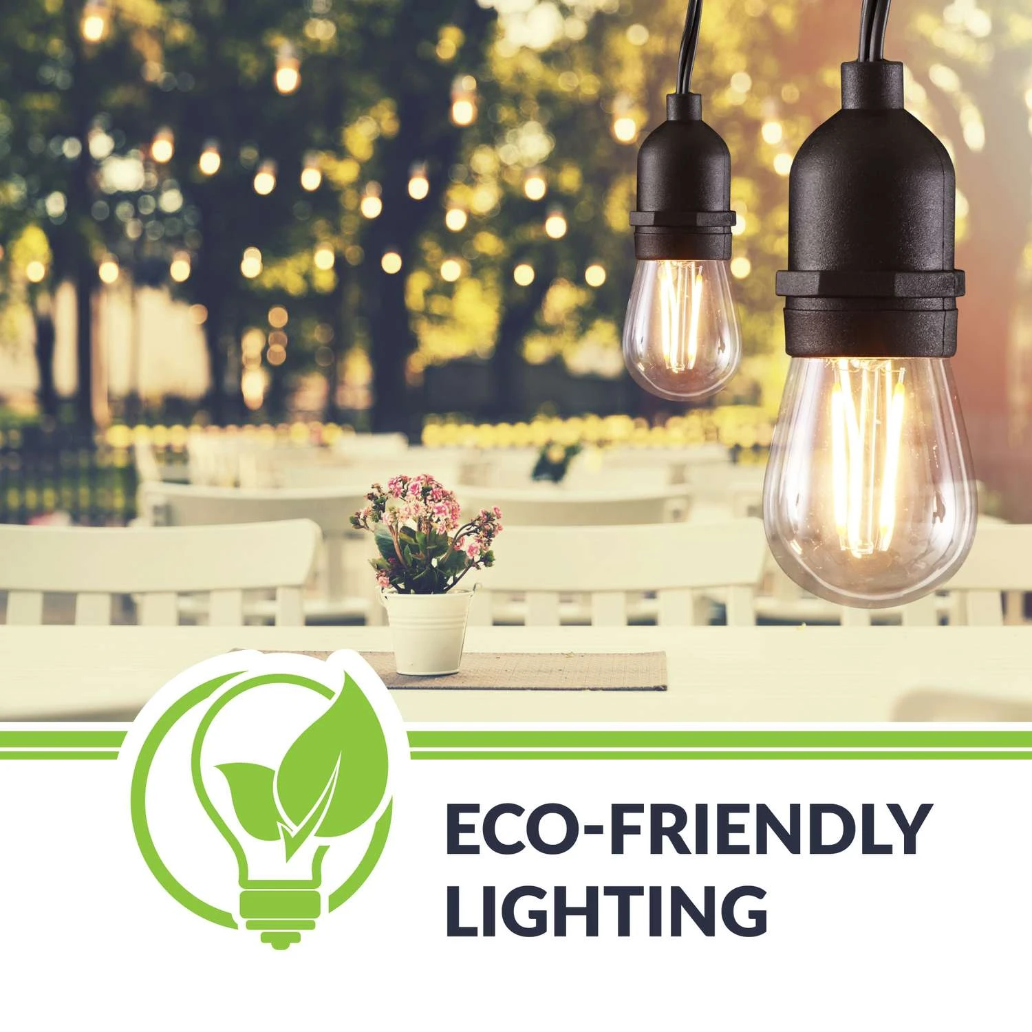 Convenience meets fashion with these new LED outdoor string lights with included remote controlled dimmer from Newhouse Lighting! Kick back and hit the remote to turn on, off or dim your gorgeous energy-efficient LED string lights. Each string light with LED bulbs consumes 30-watts total or 2-watts per bulb. The dimmer max wattage is rated at 150-watts, so it can handle up to 5 Newhouse Lighting 48ft LED string light sets (Model: CSTRINGLED18).Transform your outdoor string lights turn your patio into a backyard oasis without standing up with our outdoor string lights with remote controlled dimmerOur high quality LED light bulbs give off a warm glow that gives any outdoor area an inviting ambiance perfect for get-togethersLED dimmer and remote included fully relax under these LED string lights knowing you can dim and turn on/off these patio lights with the click of a buttonOur string lights are guaranteed to last through any weather conditionRain, wind or snow, our string lights are built with durability in mind and are even shatterproof as wellInstallation is a breeze and is done in a matter of minutes