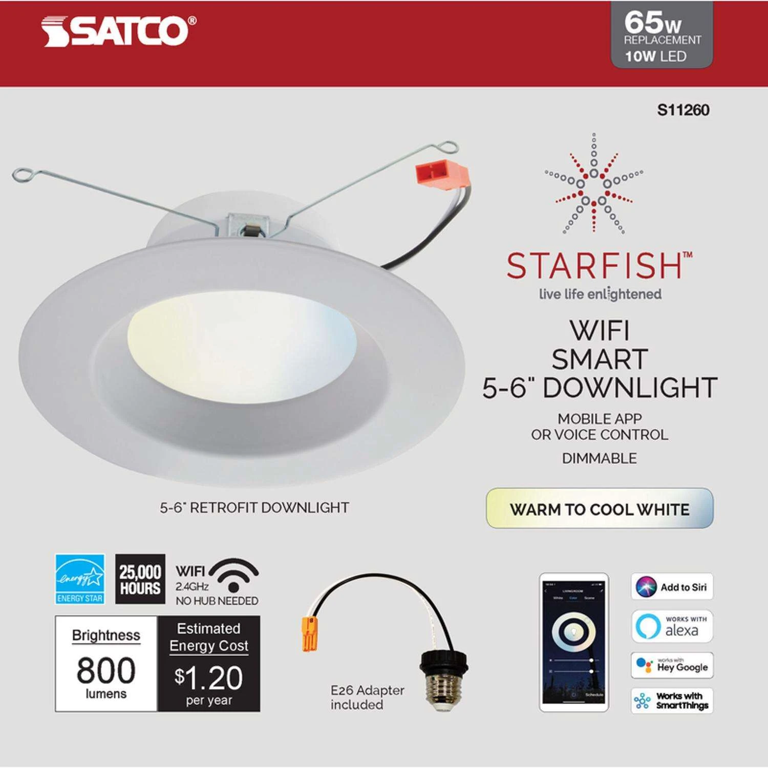 Be the first to review “Satco Starfish White 5-6 In. W Metal LED Smart-Enabled Retrofit Recessed Lighting 10 W” Cancel reply