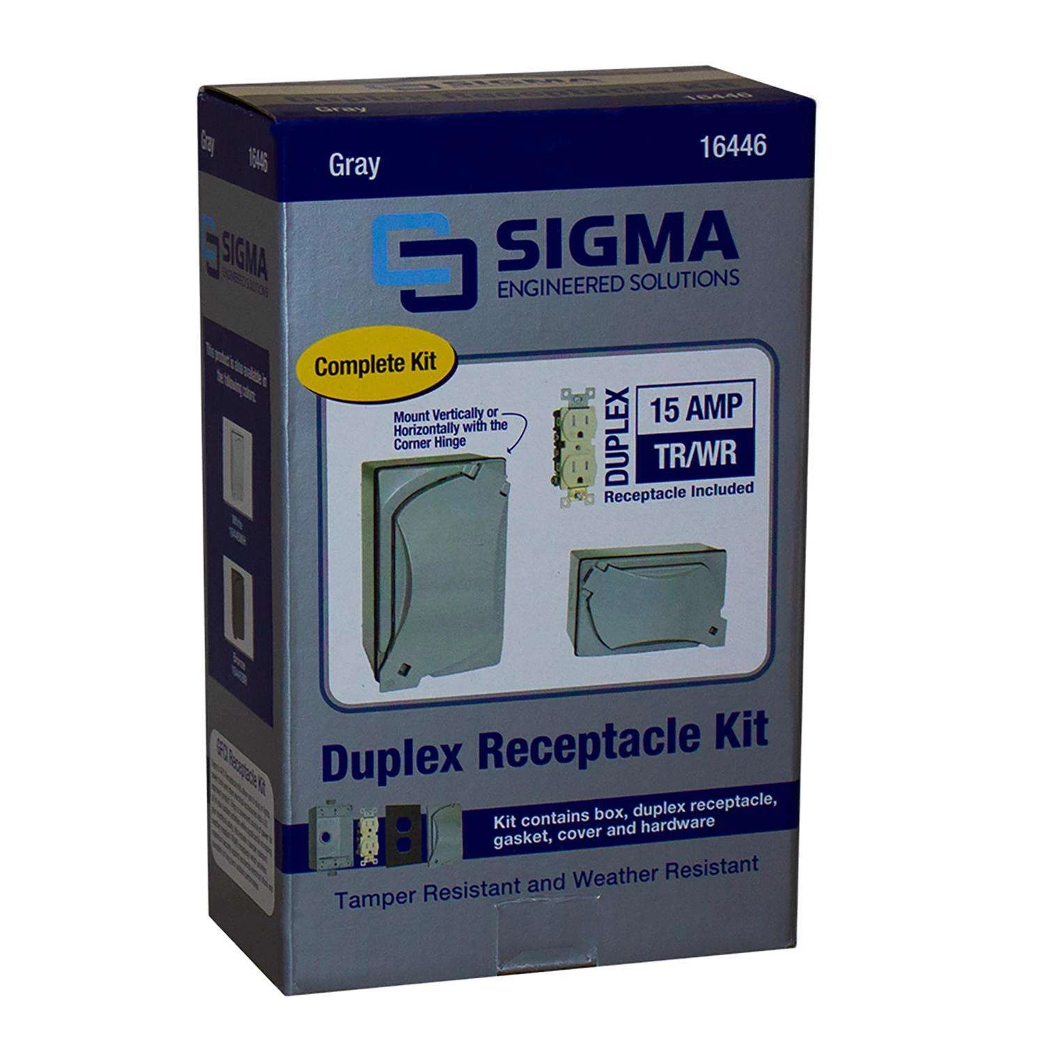 | Search Field | Sigma Engineered Solutions Rectangle Metal 1 gang Duplex Outlet Kit Boxes, Fittings, and Conduit Box Covers ELECTRICAL BOXES/COVERS MTL WEATHERPROOF BOX/COV SIGMA ELECTRIC Sigma Engineered Solutions |