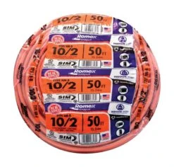 The Romex SIMpull 50 feet. 10/2 NM-B Wire features an easy-to-pull SIM Technology jacket. The solid wire is designed for use in interior residential applications. UL listed.124 lb. per 1000’Romex SIMPULL NM-B ResidentialNM-B – Non Metallic Type B600 VoltsFor Dry Locations Only90C Heat CapacityOrange jacket2 conductor design10 AWG24 mils insulation and jacket thickness