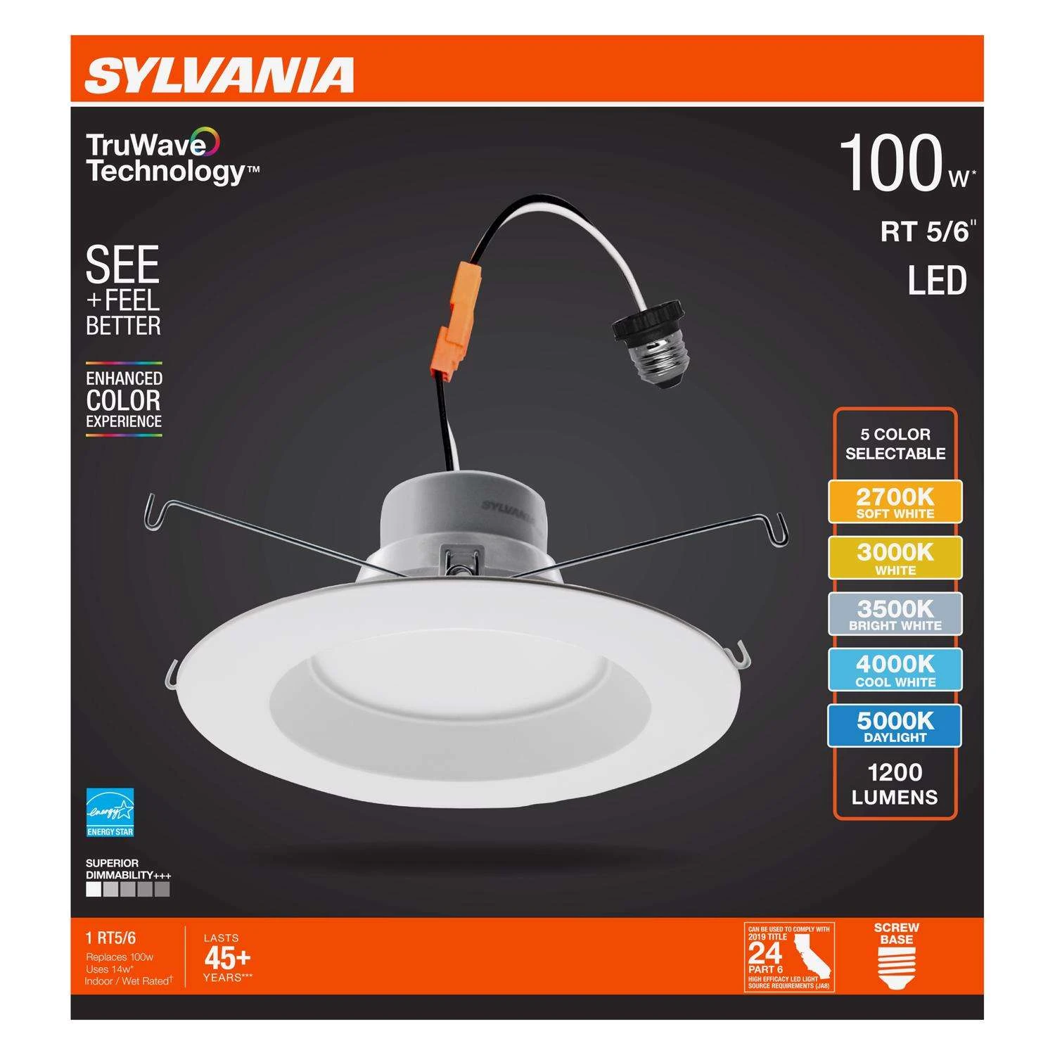 Sylvania LED RT products maximize the energy savings of LED technology by also adding TruWave Technology for more natural light reproduction. These lights are ideal for retrofit applications in healthcare, hospitality, office, residential, and retail spaces.Dimmable down to 10 percent of full light output with compatible dimmersNo warm-up time, instant-on with full light output and consistent lamp-to-lamp colorPhase-cut dimmableSuitable for indoor and outdoor dry, damp, and wet locations5 CCT selectable (2700K, 3000K, 3500K, 4000K, and 5000K)For use in housings that can structurally support a lamp weighing 1 lbCRI is greater than 90