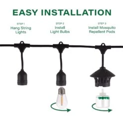 | What's Included | 36 ft. String Lights, (14) LED Bulbs, (3) Repellent Pods and (1) Replacement Fuse |