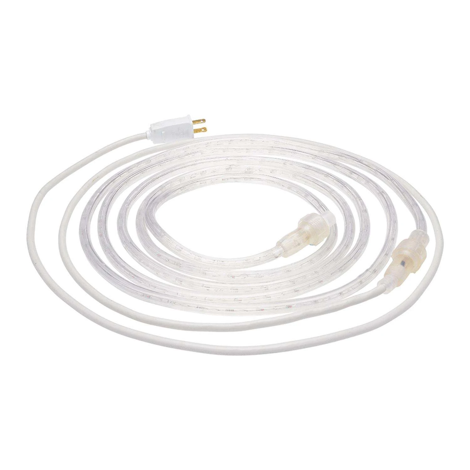 The adjustable white rope light kit is an ideal lighting solution for outdoor applications. Plug-in power makes this light easy to install and a wireless remote control allows the user to switch between numerous colors and operating modes.Ideal for lighting stairways, pathways, decks, patios, hallways and bannistersChoose 2700K warm white light, 6500K cool white light or a blend of warm and cool to create a variety of adjustable white optionsLink up to 300 feet together for seamless lightingFlexible, heavy-duty, UV inhibiting PVC tubing resists yellowing and crackingIP65 rating allows for outdoor use