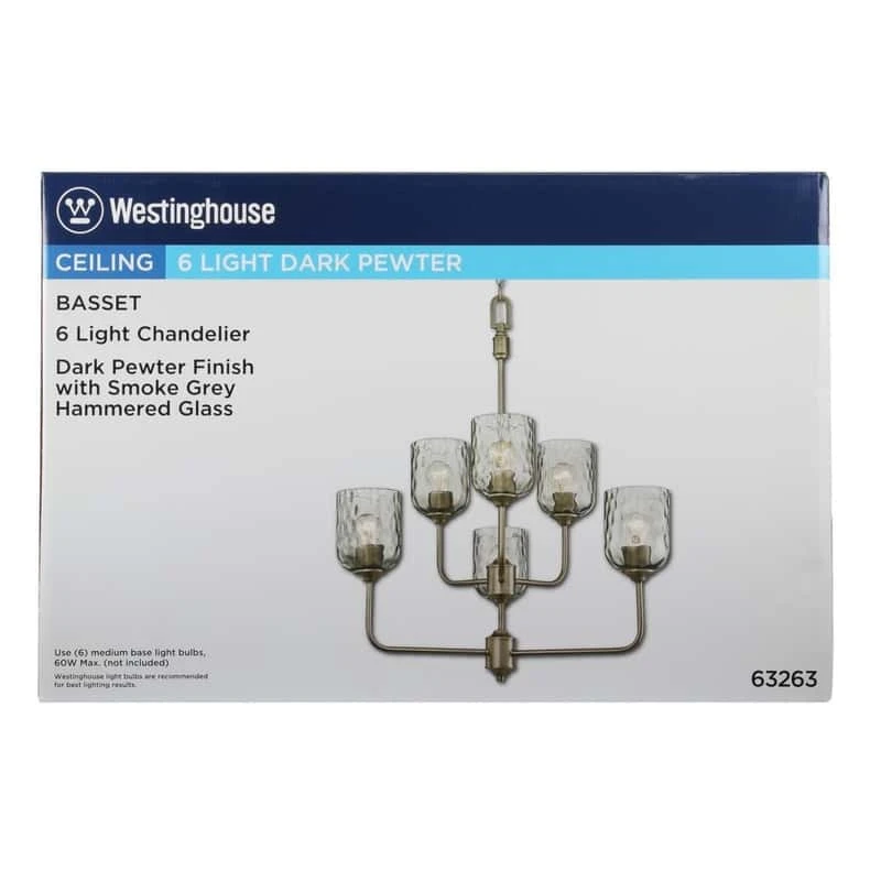 Westinghouse Basset Brushed Pewter Gray 6 Bulbs Lights Chandelier