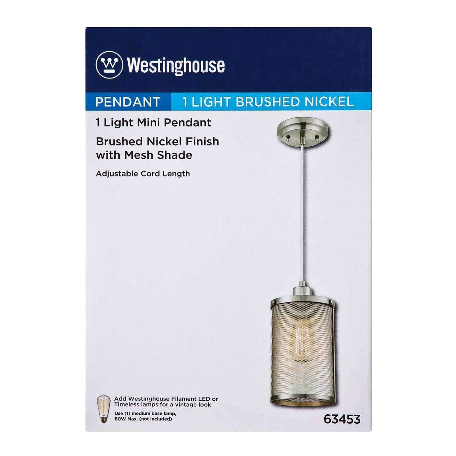 | Search Field | Westinghouse Brushed Nickel 1 lights Mini Pendant Light Light Fixtures Chandeliers and Pendants DECORATIVE LIGHT FIXTURES TRACK AND PENDANT WESTINGHOUSE LIGHTING CO Westinghouse |