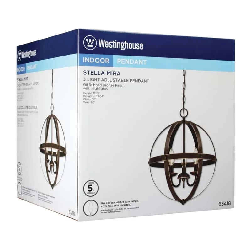 | Search Field | Westinghouse Stella Mira Oil Rubbed Bronze 3 lights Pendant Light Light Fixtures Chandeliers and Pendants DECORATIVE LIGHT FIXTURES LED TRACK & PENDANT WESTINGHOUSE LIGHTING CO Westinghouse Stella Mira |